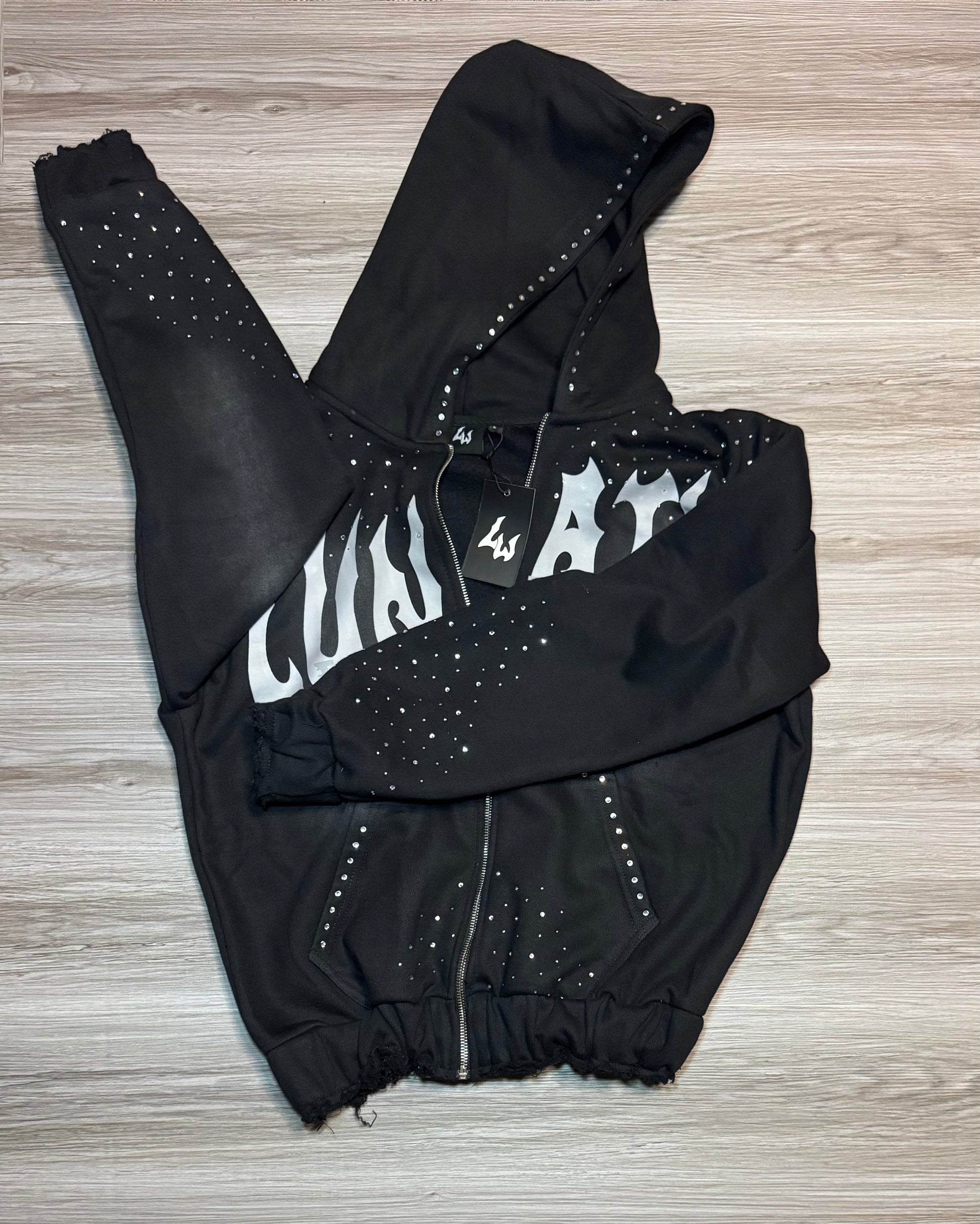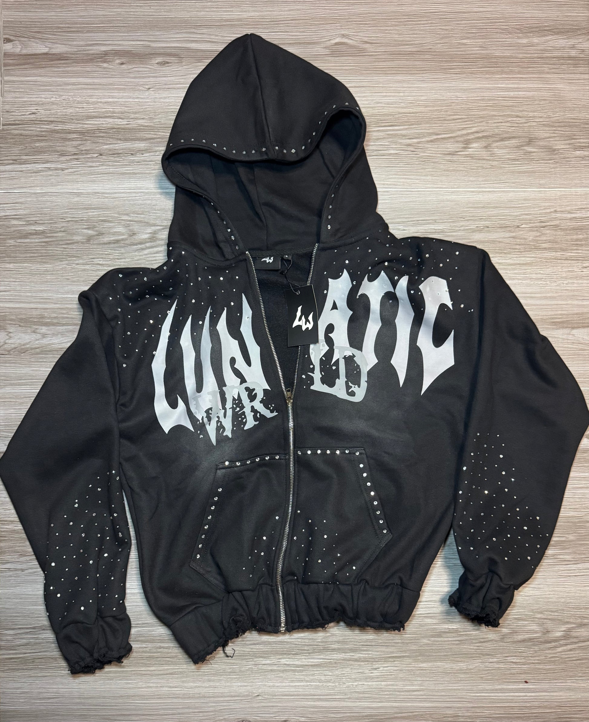 Black Rhinestone Lunatic Wrld Zip-Up